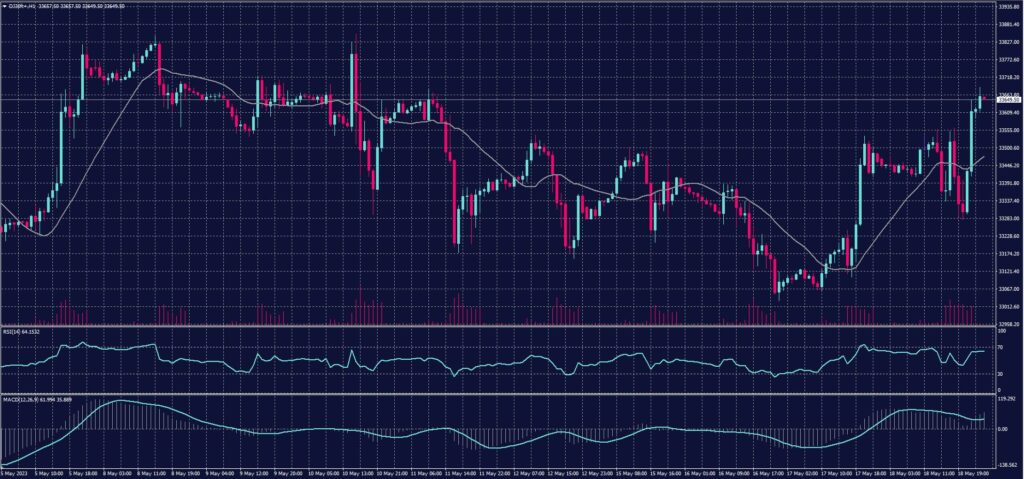 The Dow Jones rose by 0.34%, equivalent to 115 points, closing above 33,500 points. The S&P 500 rose by 0.9%, achieving its highest closing level in 9 months.