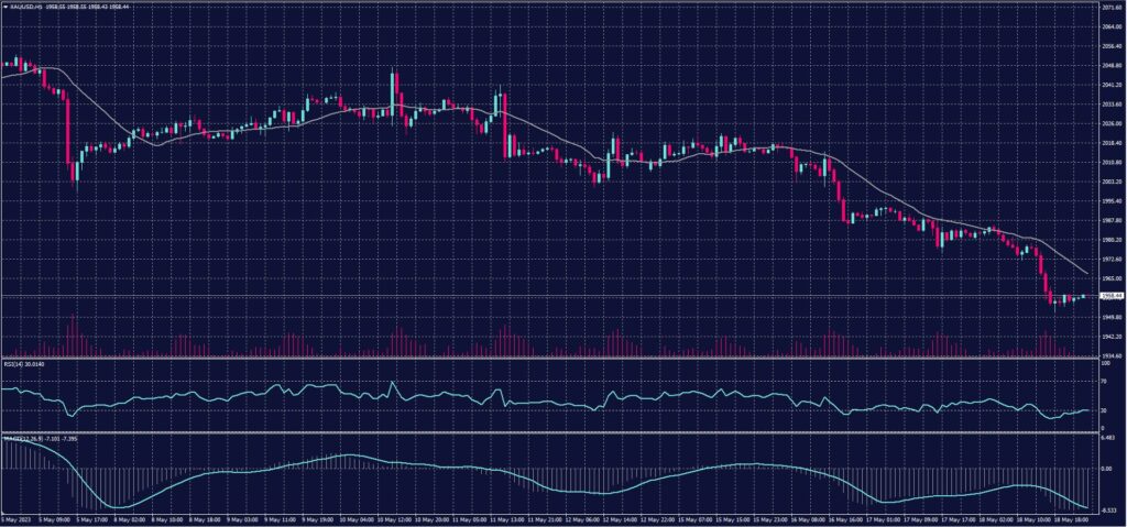 Gold continued its decline on Thursday following robust new economic data in the United States, which dampened expectations of the Federal Reserve easing the pace of interest rate hikes. Additionally, the precious metal faced pressure due to optimism surrounding the possibility of reaching an agreement to raise the debt ceiling.