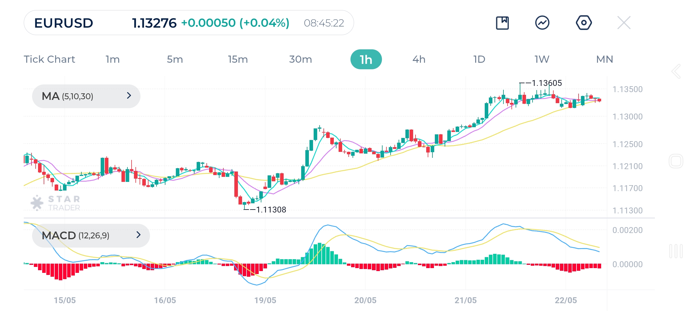 EURUSD continues its uptrend for the past three weeks, reaching a recent high around 1.1360. Since yesterday, the pair has been trading in a sideways/consolidation phase slightly below that high.