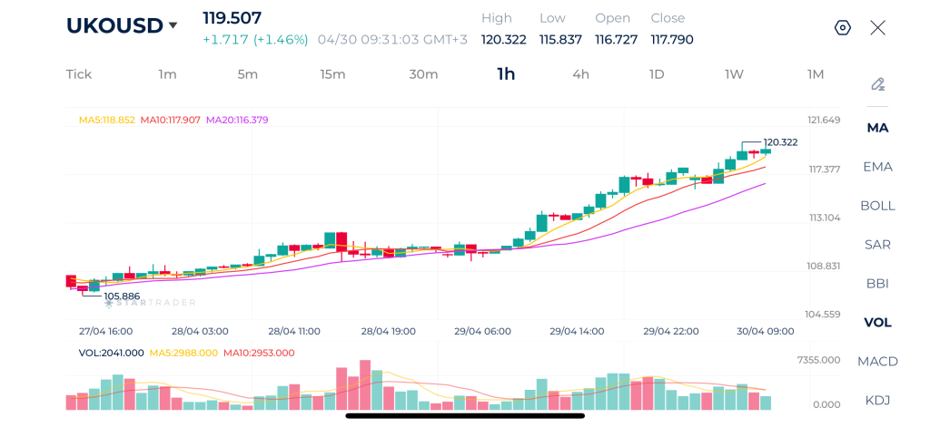 Biểu đồ Brent khung 1H