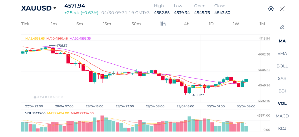 Vàng vẫn đang trong xu hướng giảm ngắn hạn về mặt kỹ thuật, tuy nhiên động lực giảm đã chậm lại rõ rệt. Sau đợt bán tháo mạnh đẩy giá về khu vực $4,555, thị trường bước vào giai đoạn tích lũy, hình thành vùng nền với các đáy sau cao hơn nhẹ.