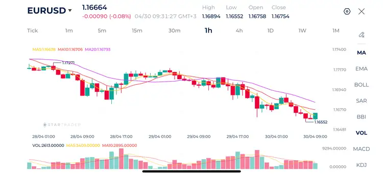 Biểu đồ EURUSD khung 1H